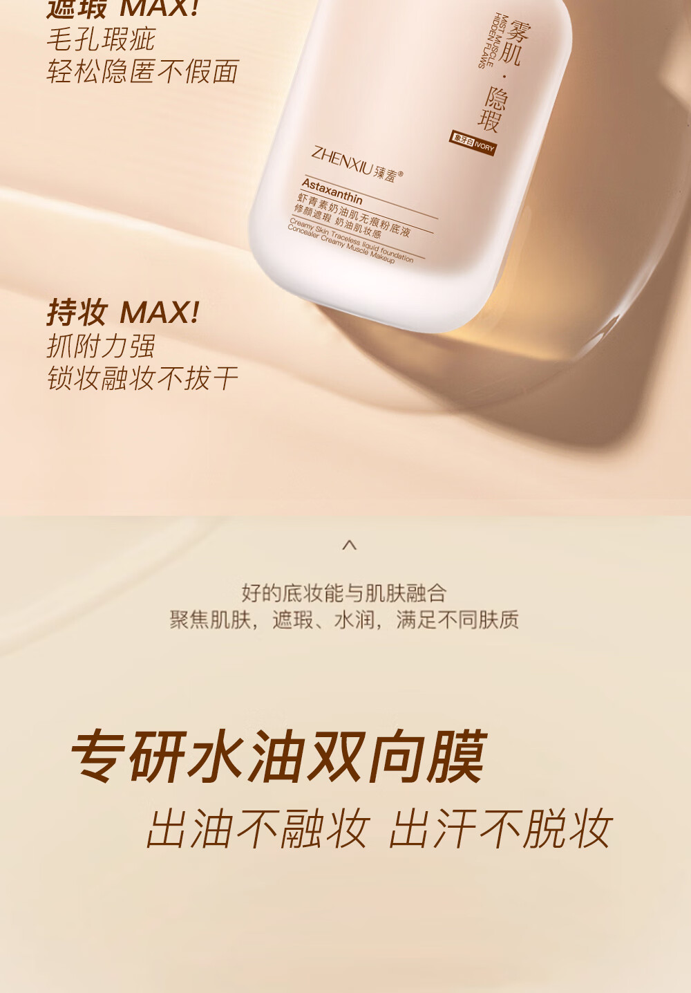 虾青素粉底液轻薄持妆遮瑕自然提亮不闷痘滋润bb霜 自然色【1瓶】 30g