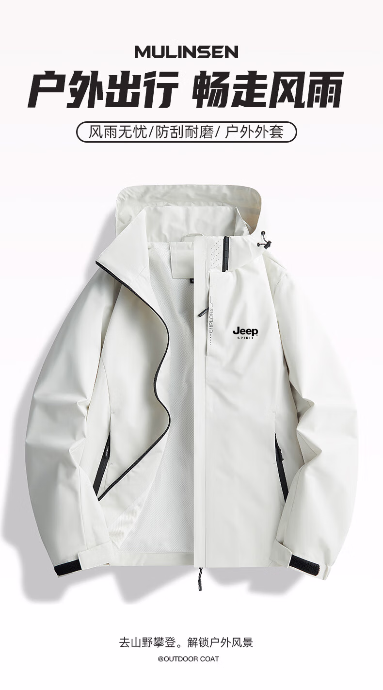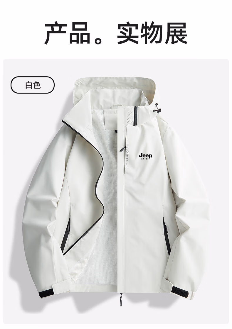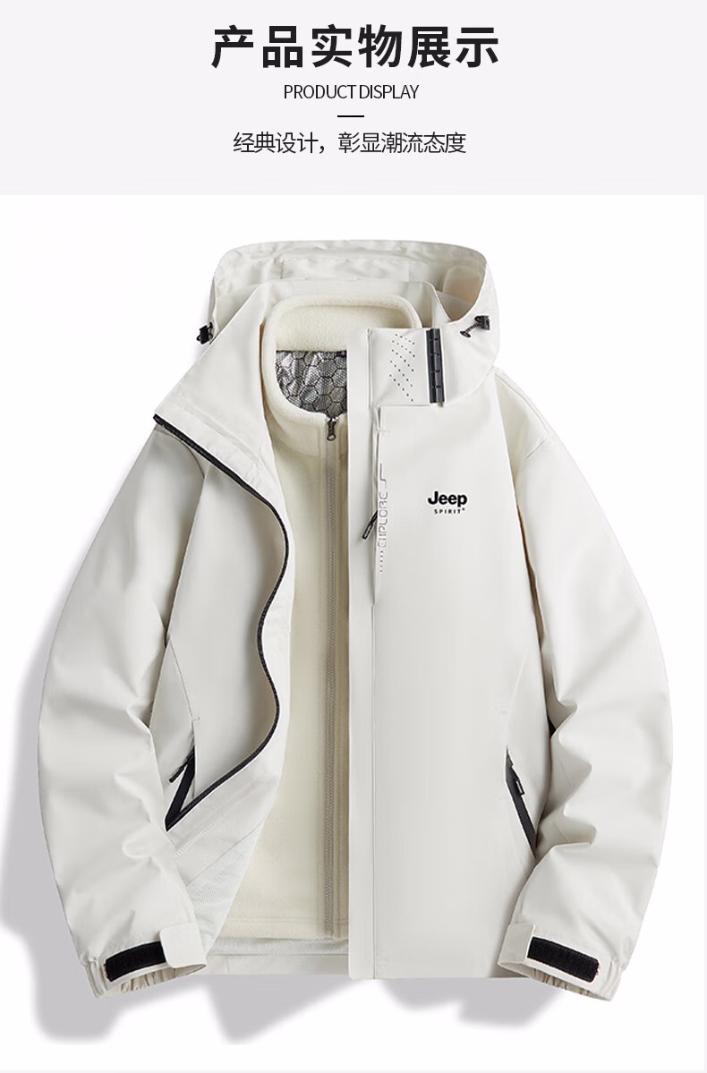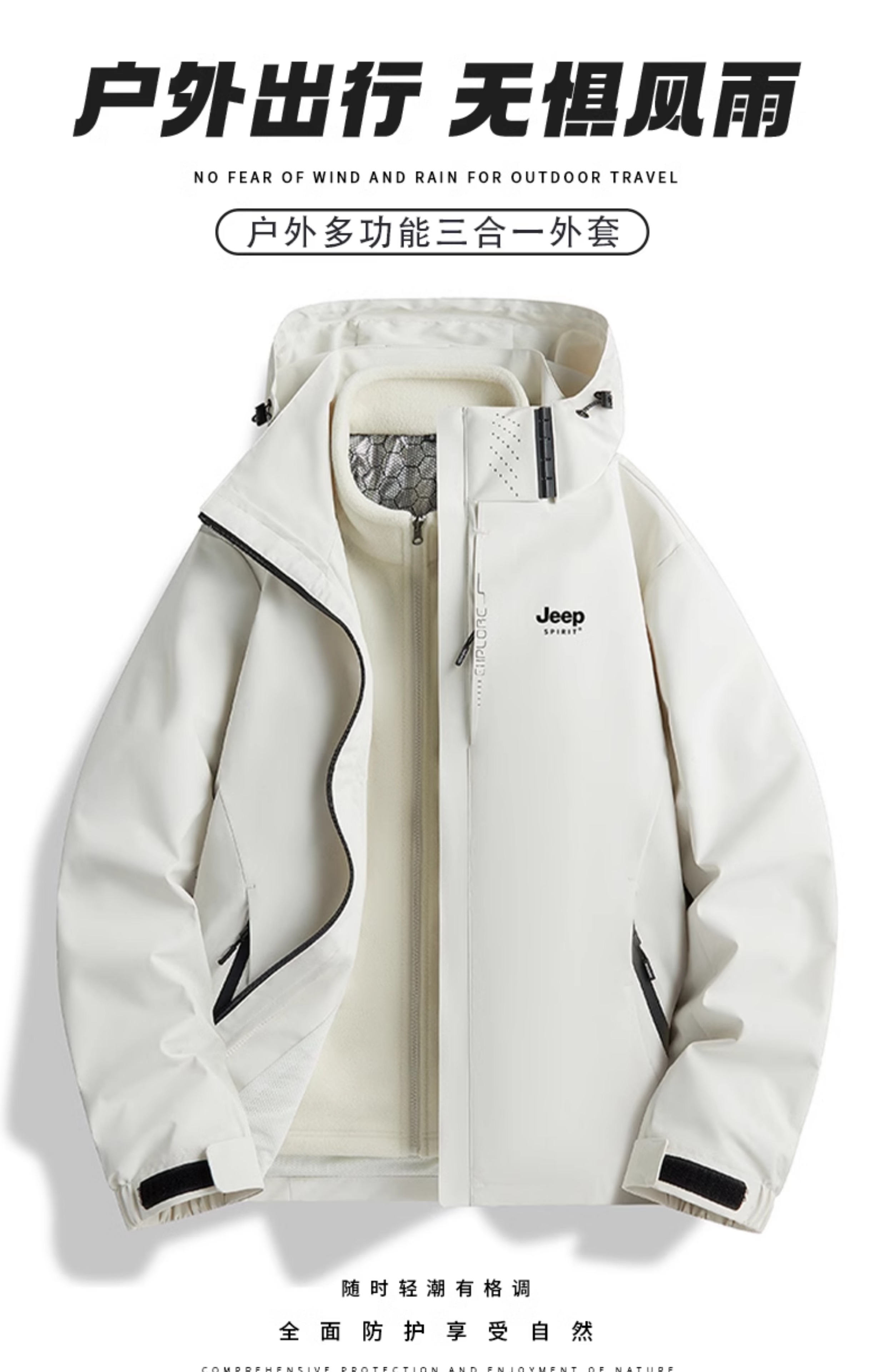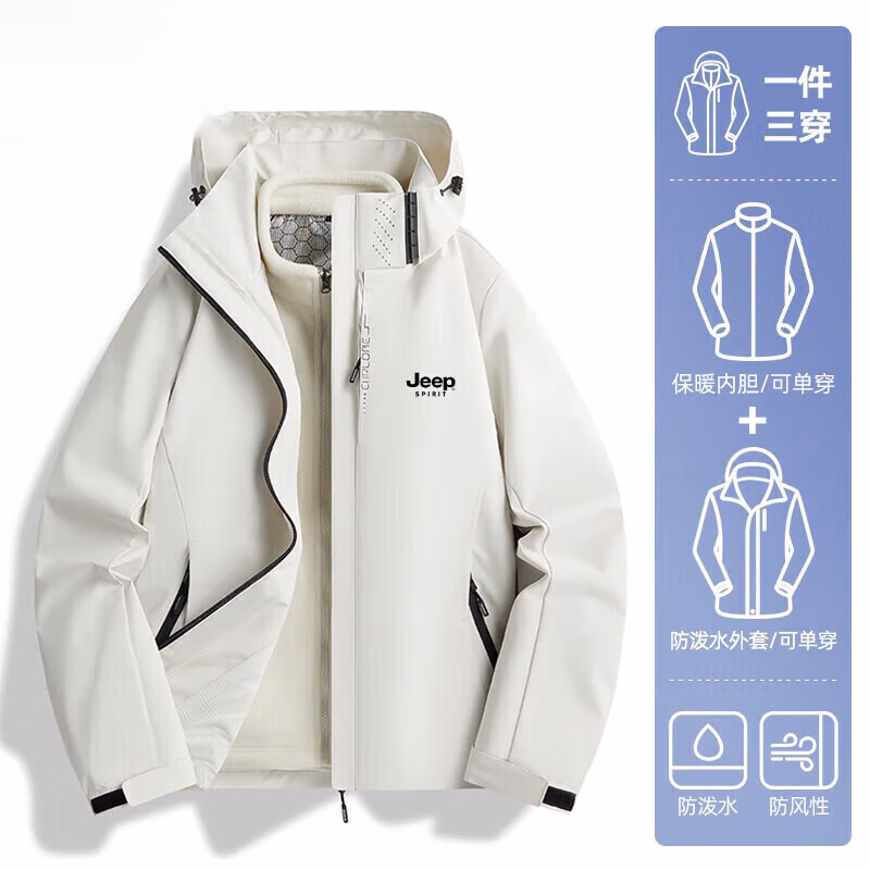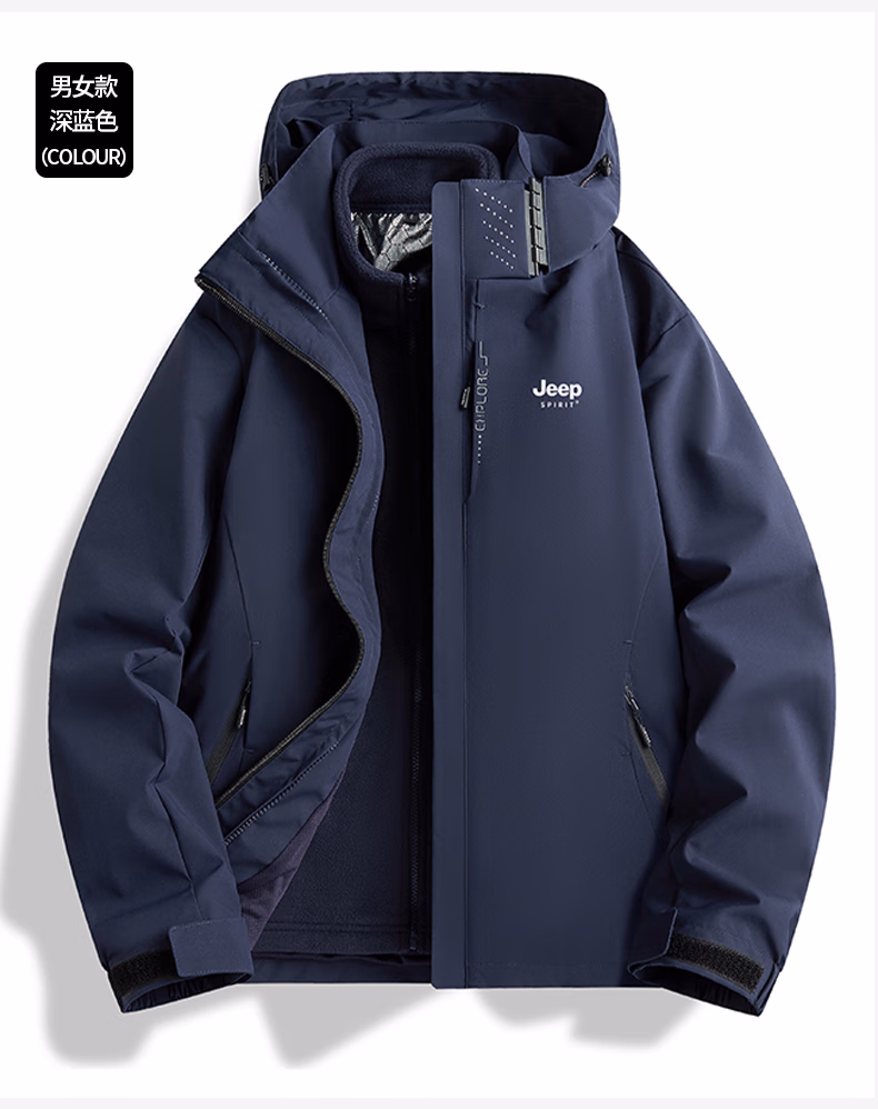 JEEP SPIRIT吉普冲锋衣男春秋外套夹克户外运动三合一两件套可拆卸内胆防风防 zhongli-6268三合一黑色 L (建议120-130斤)
