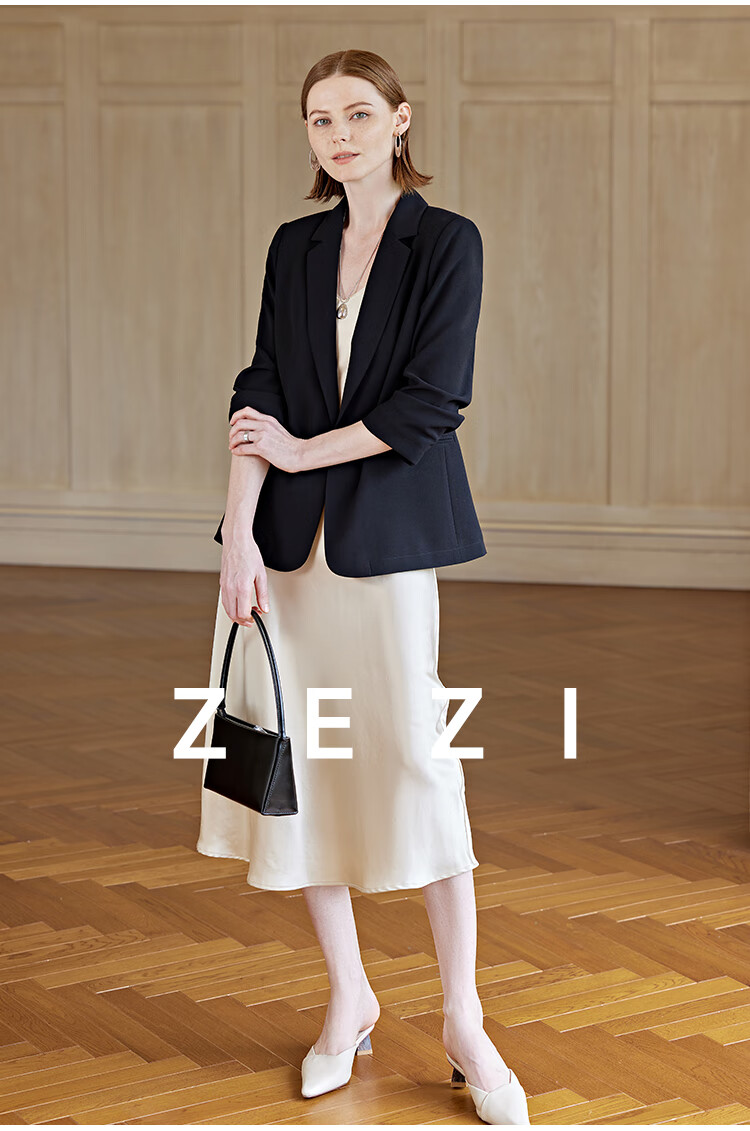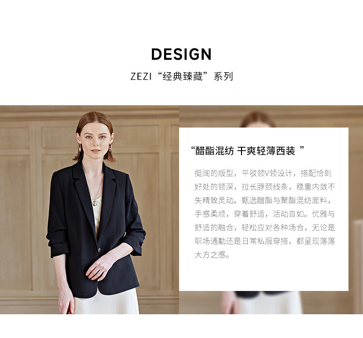 ZEZI西装外套女夏季西服薄款七分袖醋酯通勤正装修身简约时尚职场穿搭 岩石灰 XXL