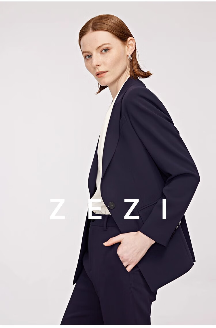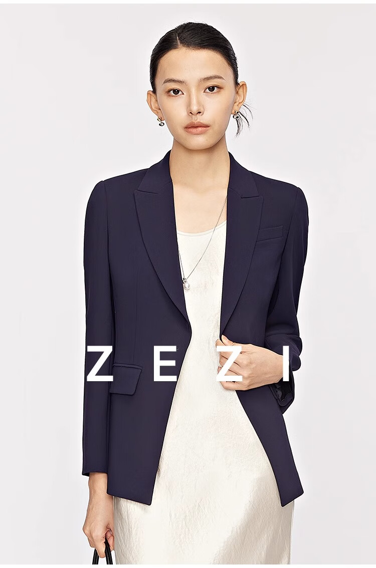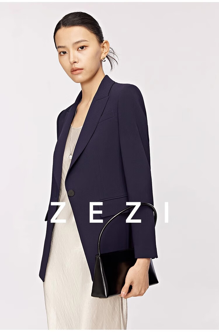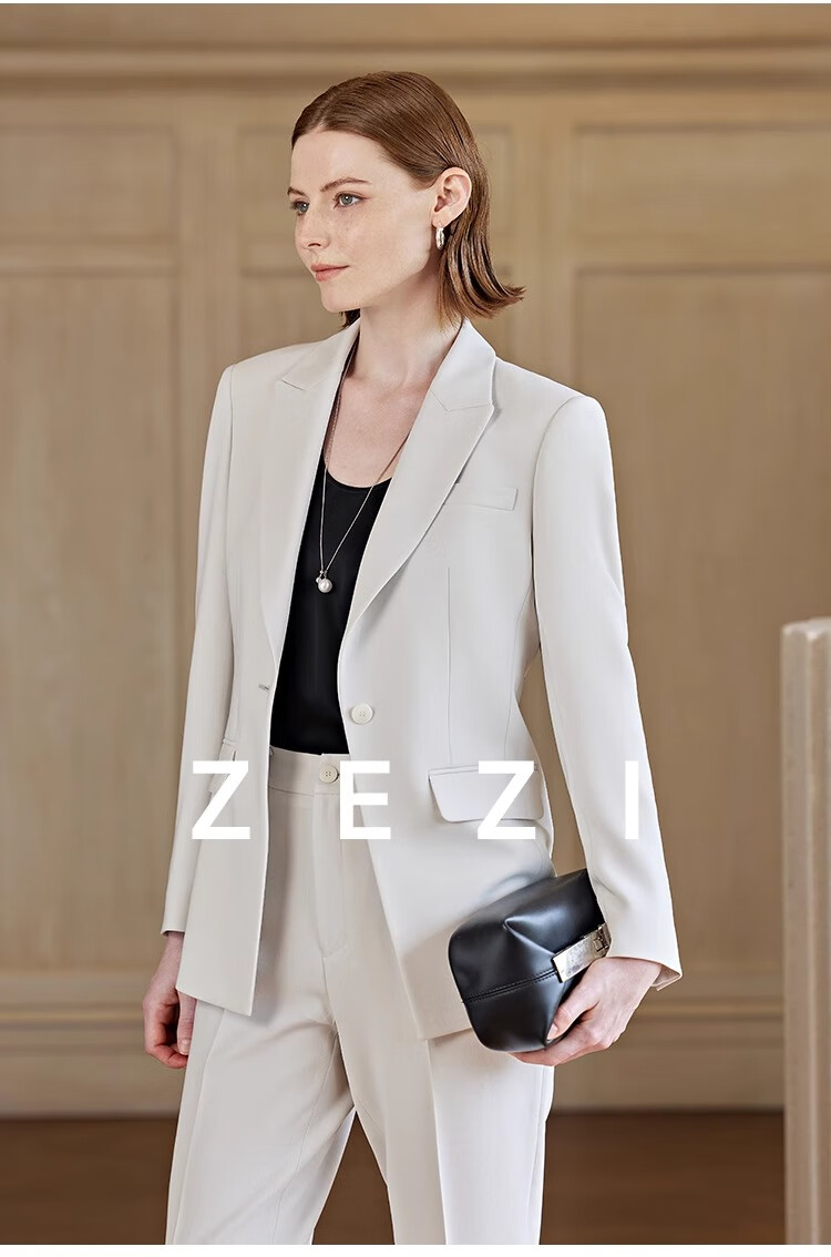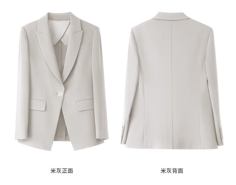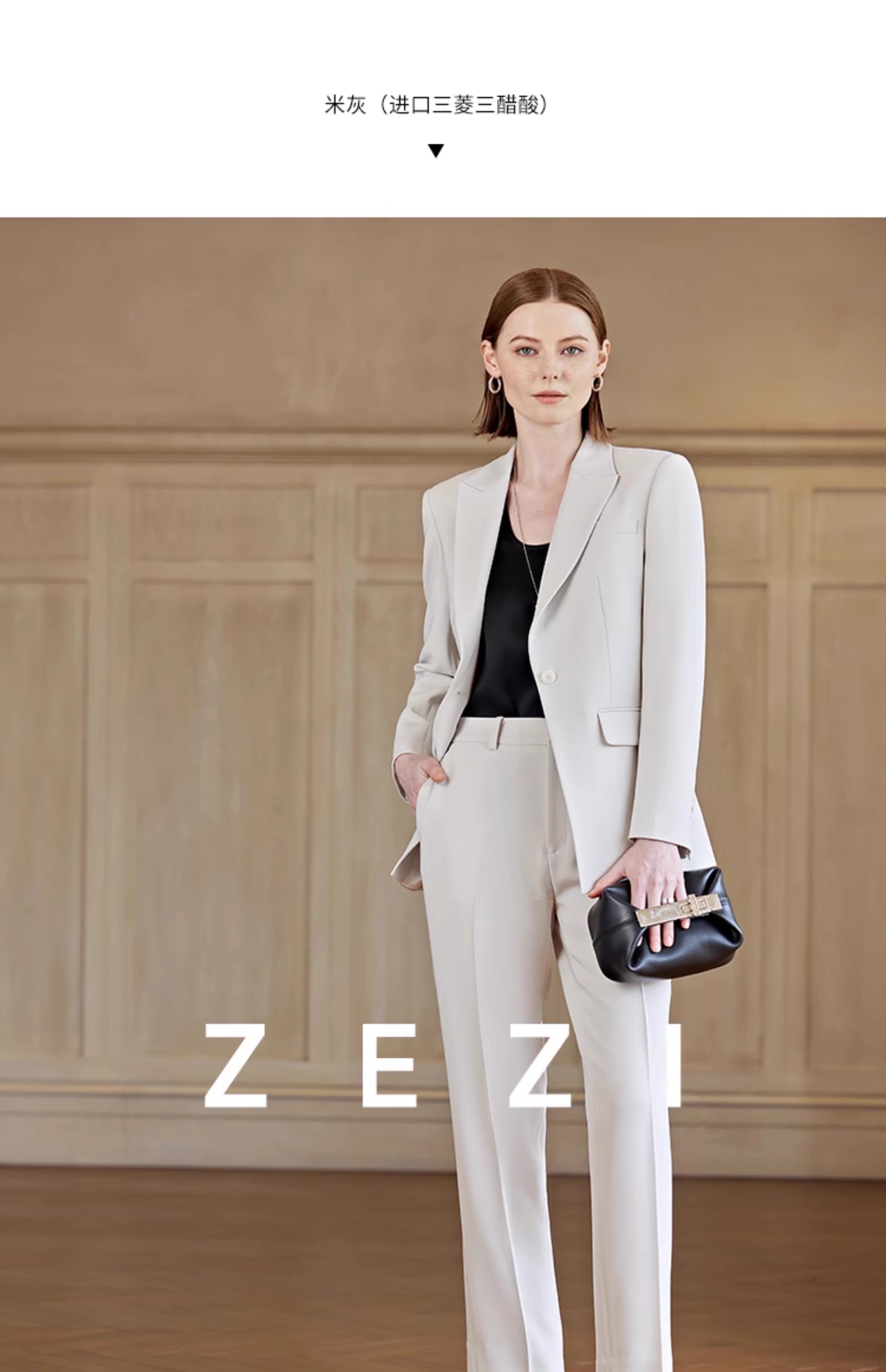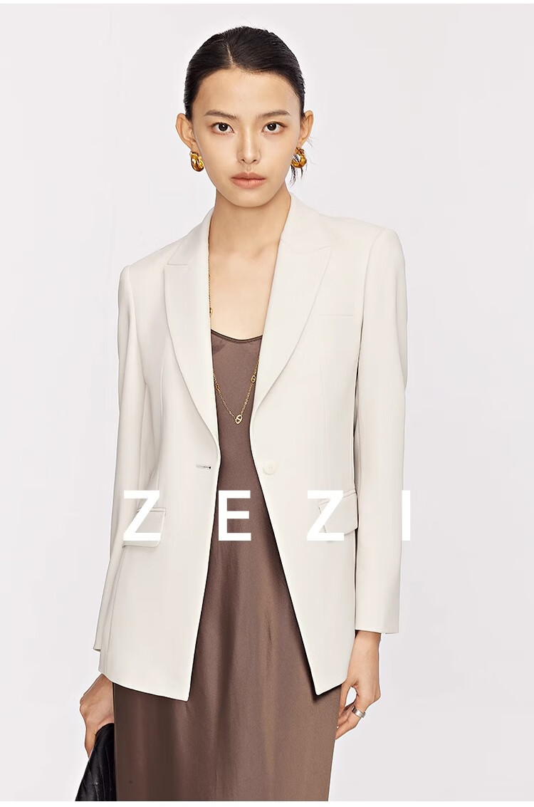ZEZI进口三醋酸小西装套装女初夏款休闲百搭戗驳领西服职业装高档外套 米灰 上衣 M